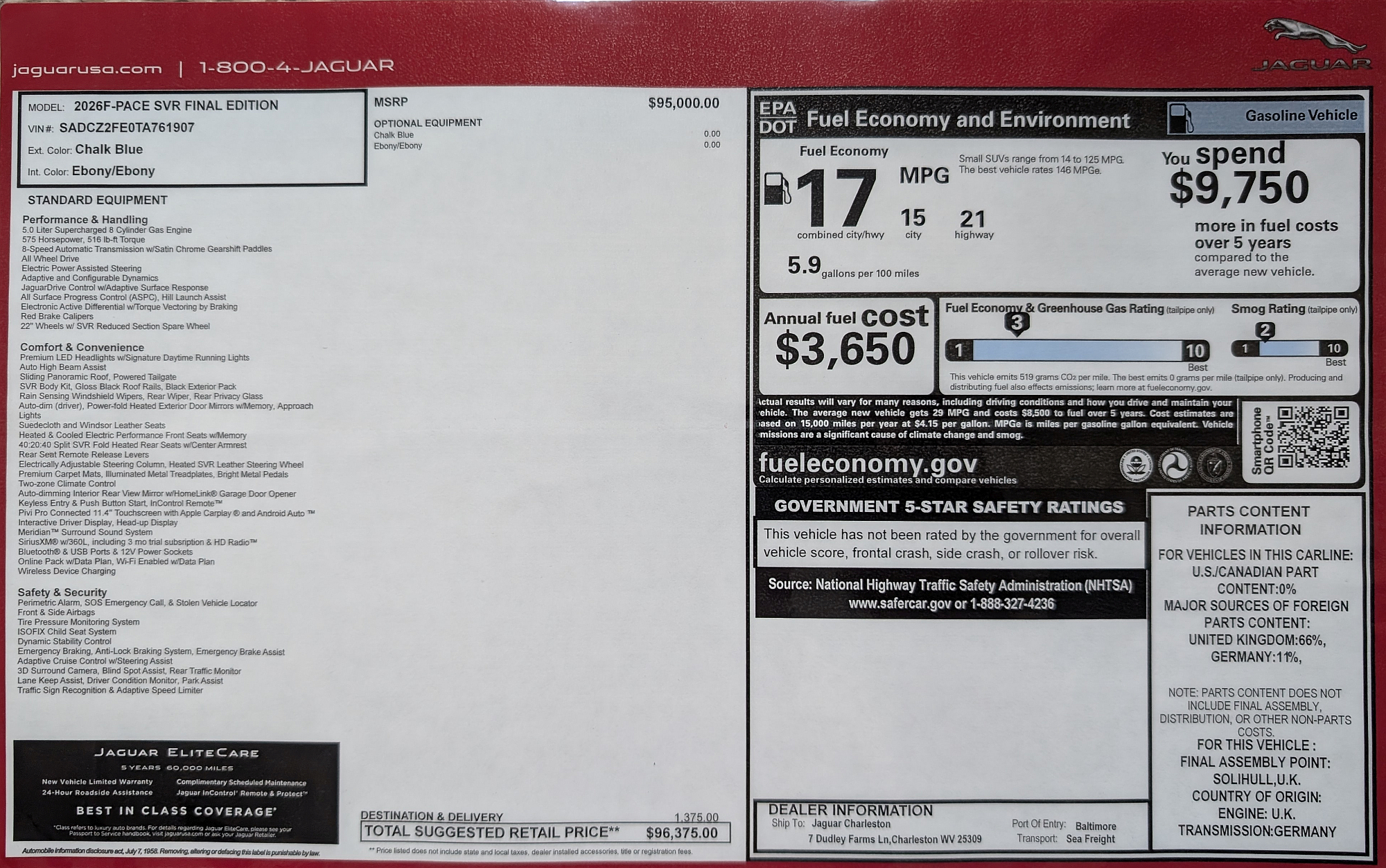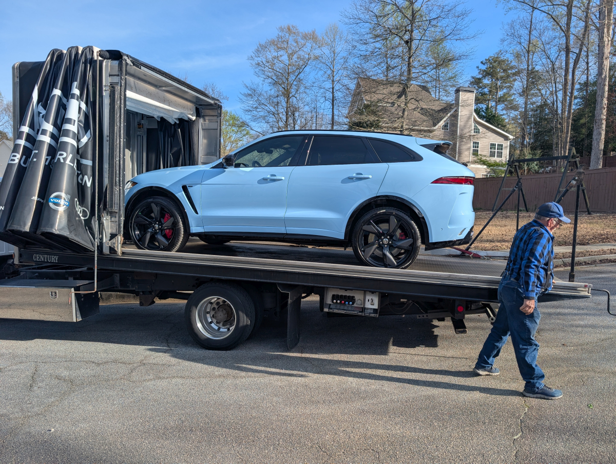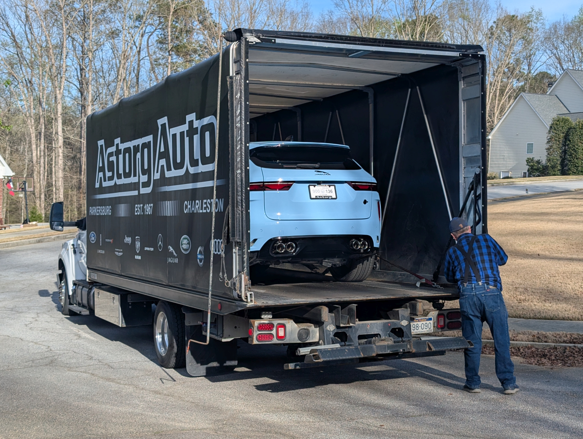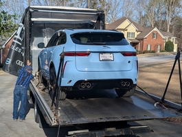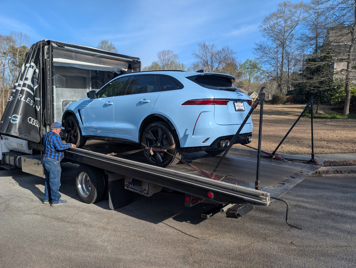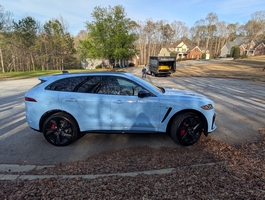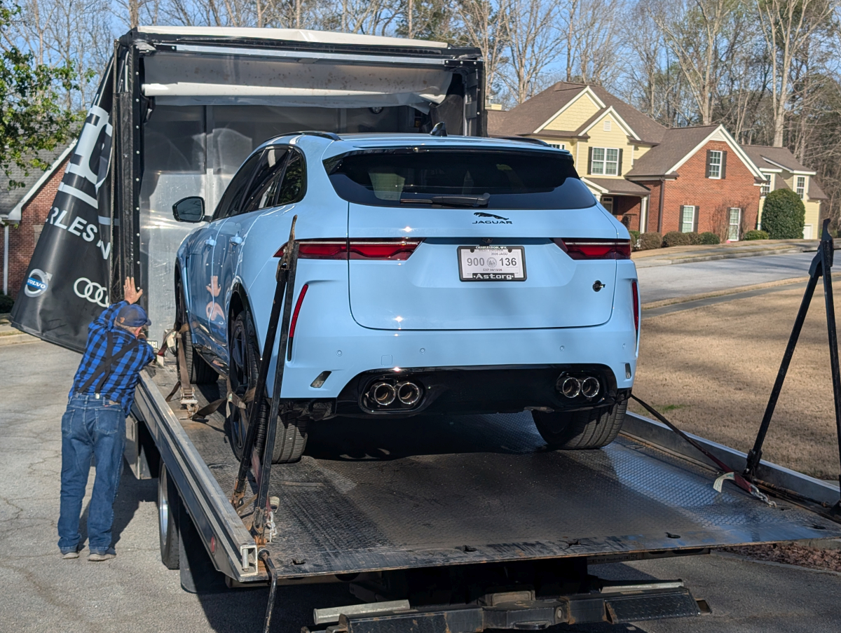This 2021 Jaguar F-Pace SVR 575 (X761) Final Edition was purchased from Astorg Auto/Jaguar Charleston in West Virginia, sales consultant Doug Green and sales manager Brian Lister. This is 1 of 150 Final Edition F-Pace SVR 575 exclusively in Chalk Blue for Jaguars 90th anniversary. Astorg owns their own trucks, driver and delivery were AWESOME, like watching someone unwrap a gift