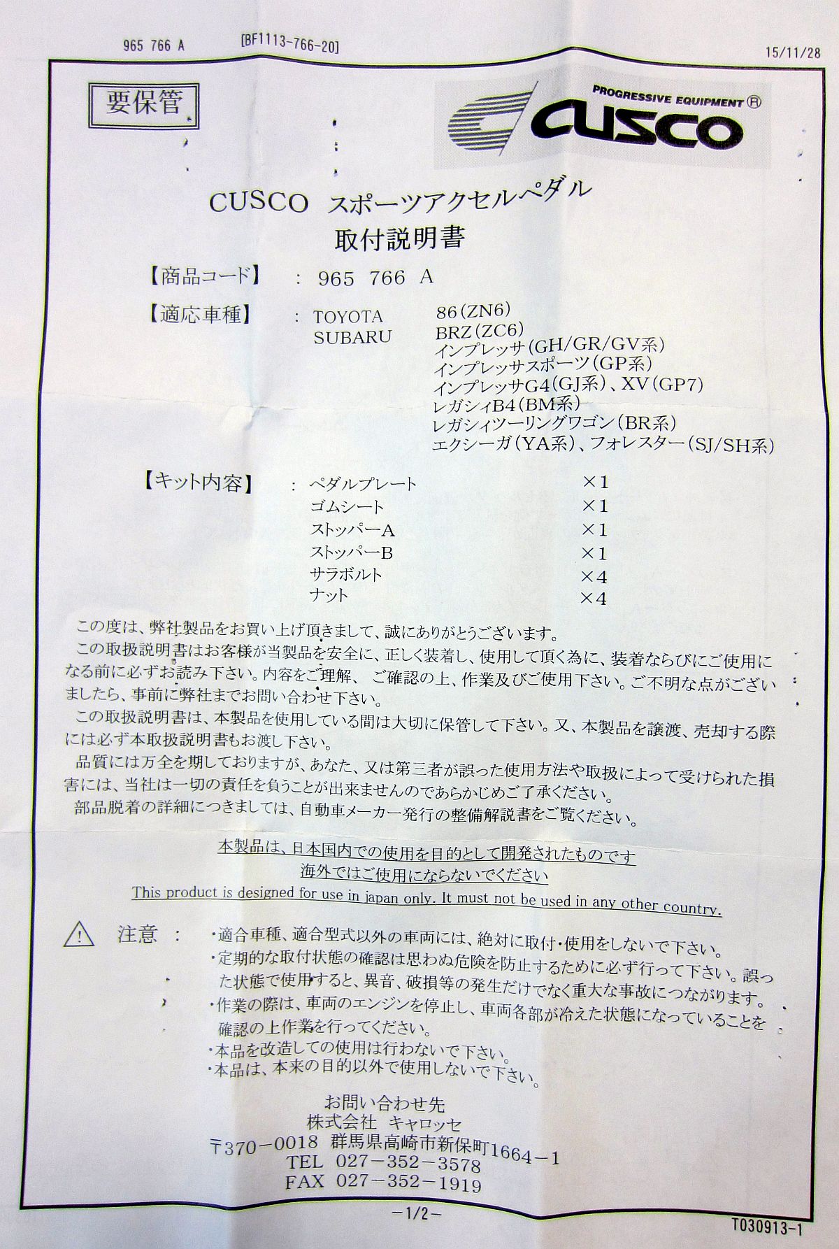 Scion FRS TRD Door Stabilizer: Japanese and English Translation