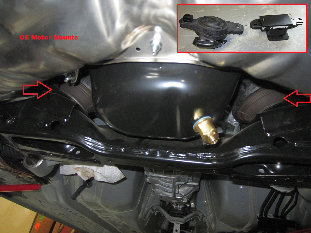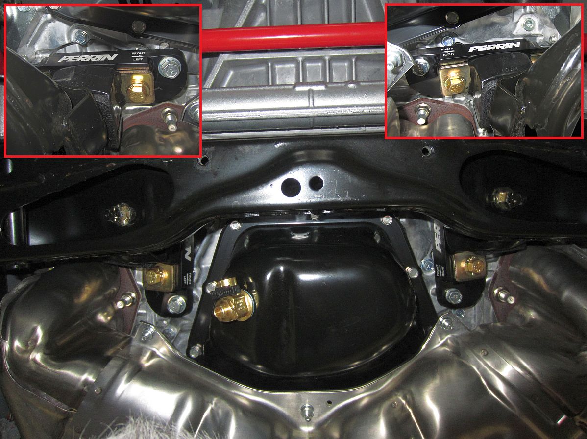 Installation: I used the noted forum guides, no issues removing either OE mount but I did have the over pipe out and the steering rack dropped at that point for other projects. The driver side mount was a little more challenging but out in 5 minutes, I would recommend removing the steering rack bolts so the rack is movable, this is the only way I got the driver side mount out so quick. Lining up the Perrin mount bolt hole was the most challenging part of the installation, a pry bar is your friend.
