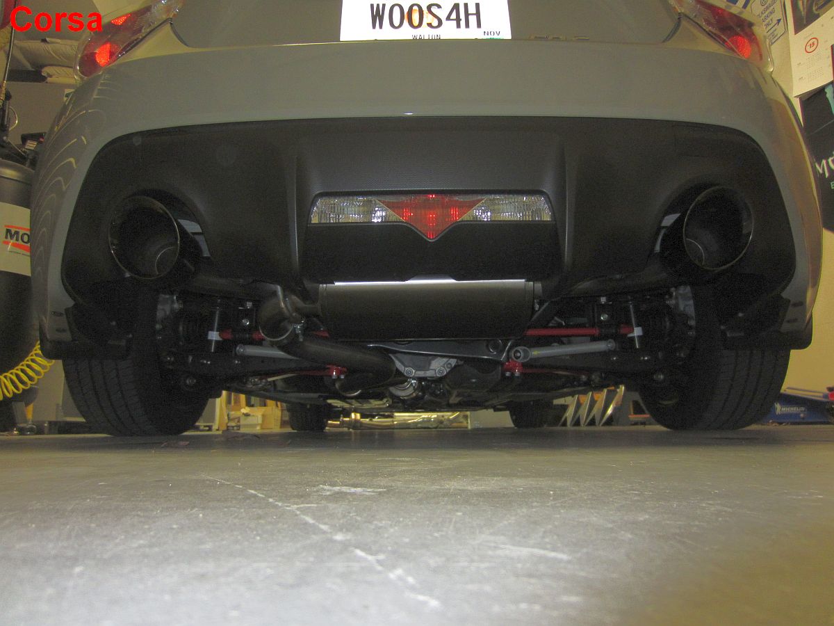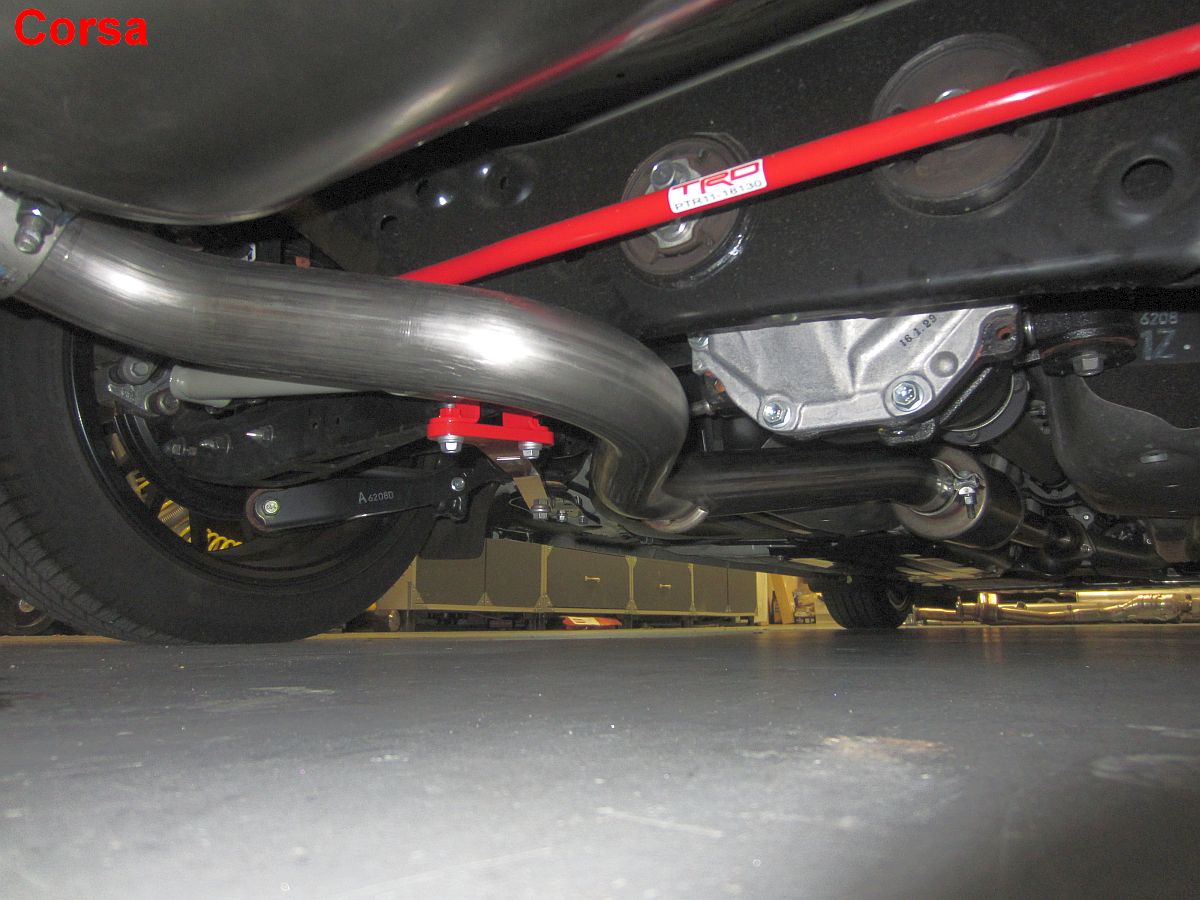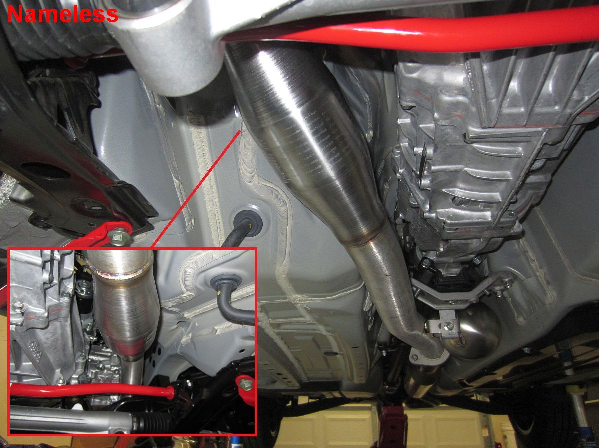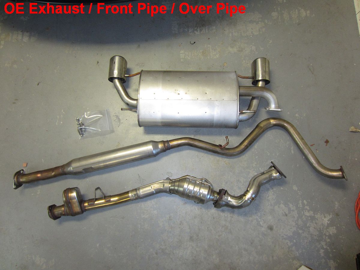 Corsa replaces the midpipe and muffler, next on the list is the Nameless 2.5" Downpipe (Replaces Overpipe) with Helmholtz Resonator that replaces the front pipe and over pipe in one piece. Forum discussion is HERE, some forum write-ups outlining DIY tips HERE and HERE.