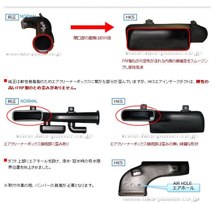 Some forum discussion on the HKS Air Intake Duct is HERE and on modifying the OE air intake HERE.