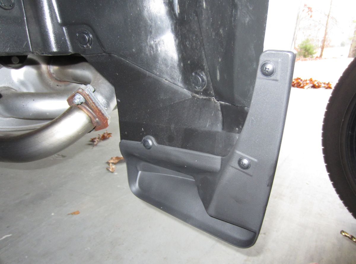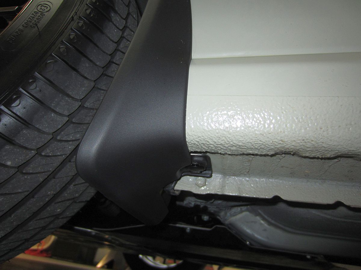 Rather than remove the front wheels, I turned the steering wheel to one side to allow access and then the other direction for the other side- this allowed plenty of room to install the front guards, drill and all. No way around removing the rear wheels, this is required for easy installation of the rear guards. Before and after pics show what is covered/protected, this is a GREAT first mod.