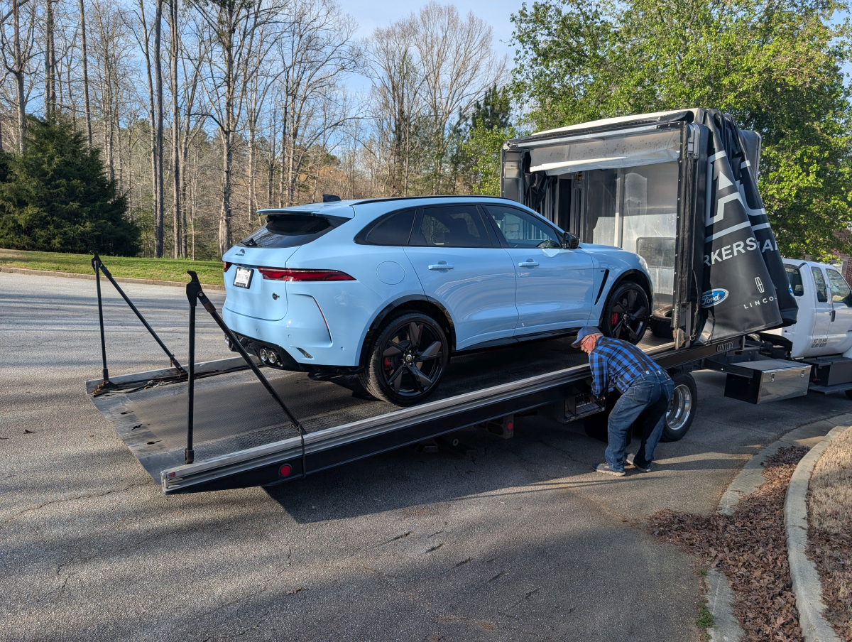 This 2021 Jaguar F-Pace SVR 575 (X761) Final Edition was purchased from Astorg Auto/Jaguar Charleston in West Virginia, sales consultant Doug Green and sales manager Brian Lister. This is 1 of 150 Final Edition F-Pace SVR 575 exclusively in Chalk Blue for Jaguars 90th anniversary. Astorg owns their own trucks, driver and delivery were AWESOME, like watching someone unwrap a gift